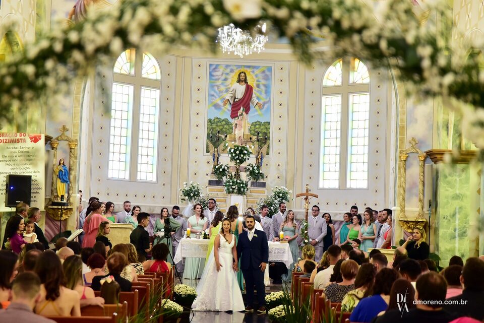 O sim de Gabriela e Guilherme na Paróquia de São Sebastião em Guapiaçu SP
