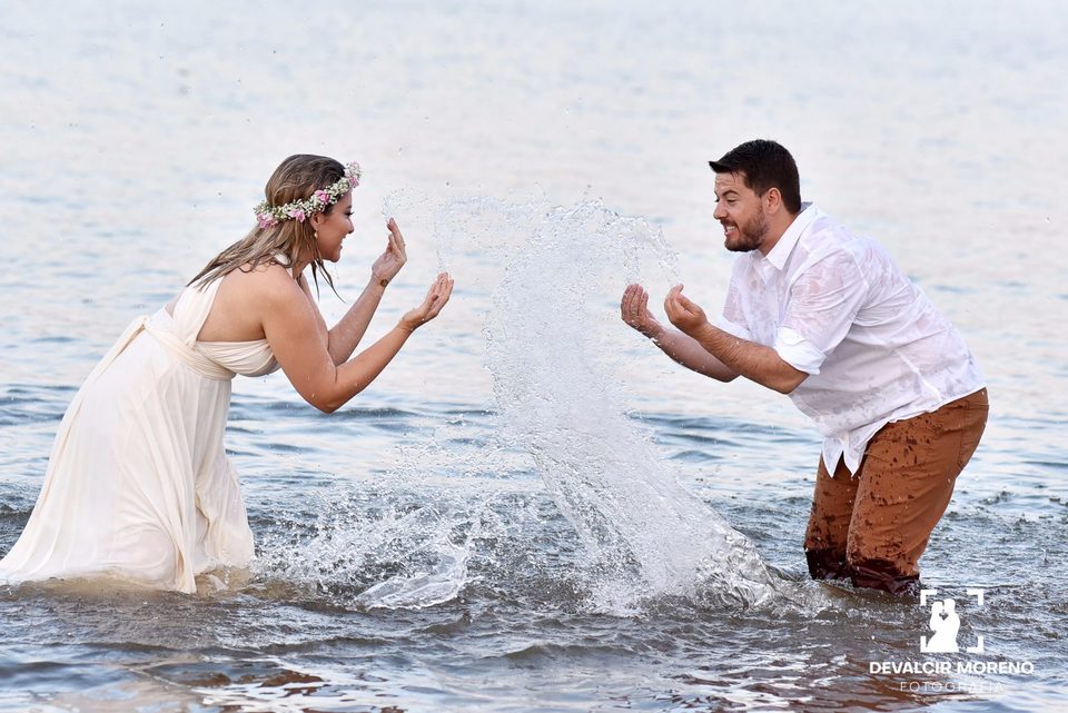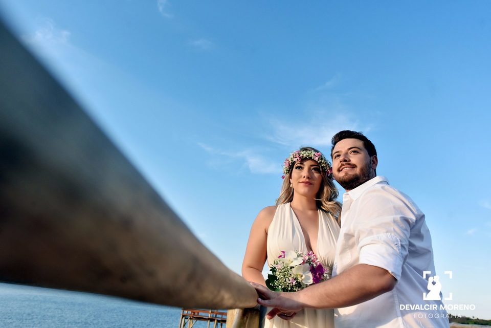 Ensaio romantico dos noivos Rayane e Jose Luis na praia de Sales