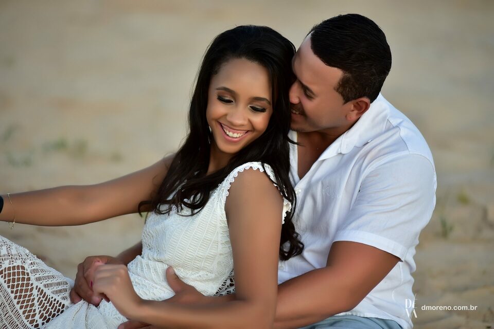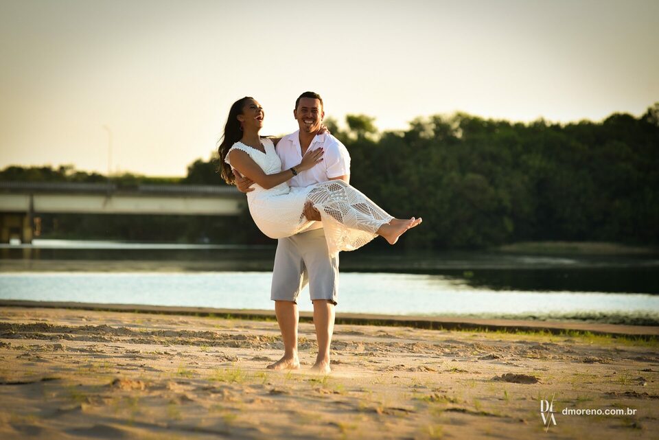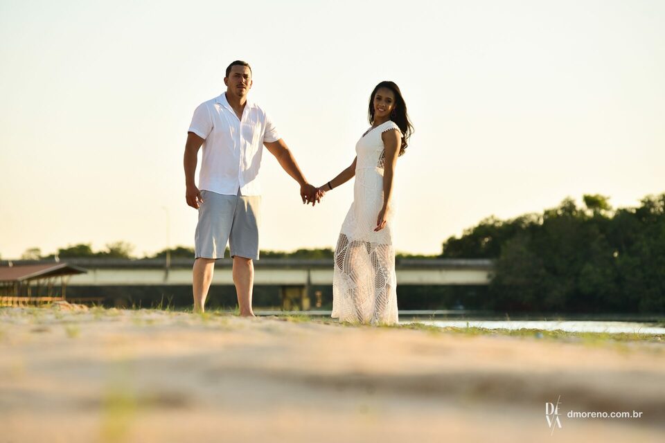 Ensaio romantico dos noivos Rayane e Jose Luis na praia de Sales